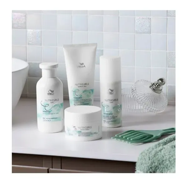 La mascarilla nutritiva Nutricurls de Wella Professionals ayuda a prevenir el encrespamiento de rizos y ondas delicados.