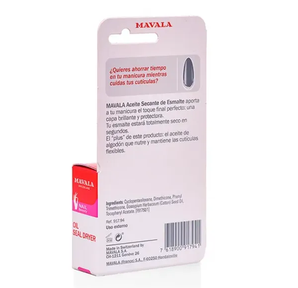 Aceite de secado ultra rápido (en segundos) con aceite de algodón que nutre las cutículas.