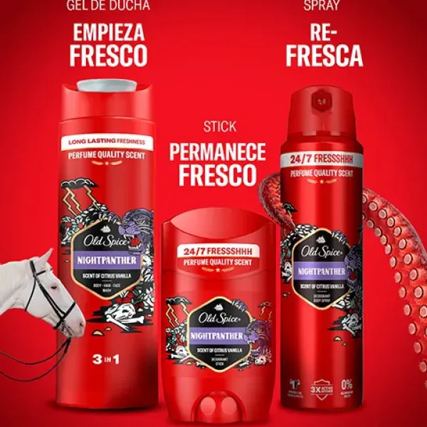 El desodorante en barra Old Spice Night Panther fortalece tu energía masculina a la vez que hueles increíblemente bien para que te sientas seguro en cualquier situación.