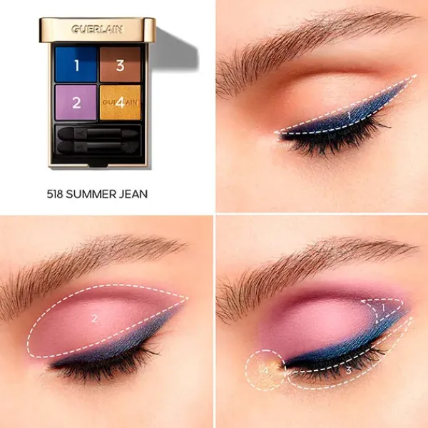 La icónica paleta de sombras de ojos se presenta en una edición limitada Ombres G 518 Summer Jeans para esta colección veraniega de Violette, Directora Creativa de Maquillaje de Guerlain, se ha inspirado en los vaqueros, eterno icono textil, para sublimar el estuche.