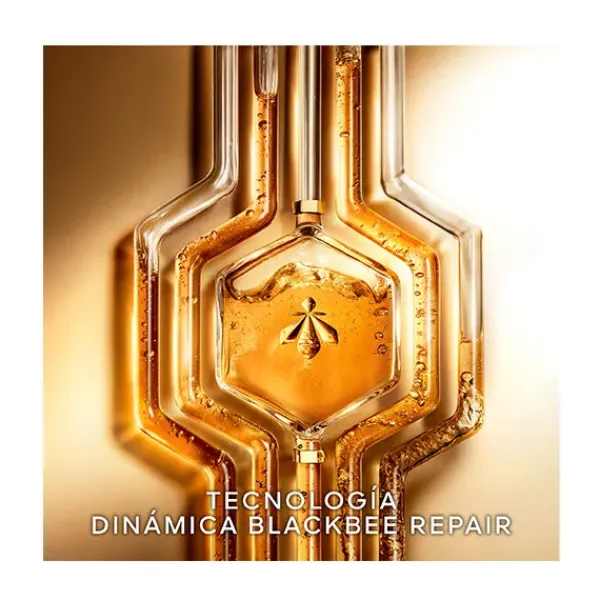 La tecnología Dynamic BlackBee Repair*** combina los productos apícolas más potentes seleccionados por la Investigación Guerlain: la excepcional miel de la Abeja Negra de la isla de Ouessant (Bretaña, Francia), 3 mieles de islas preservadas (Córcega, Icaria, Aland) y una jalea real exclusiva.