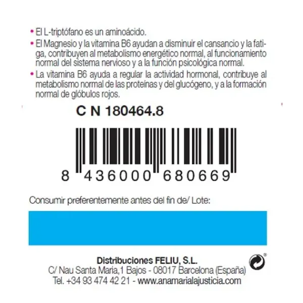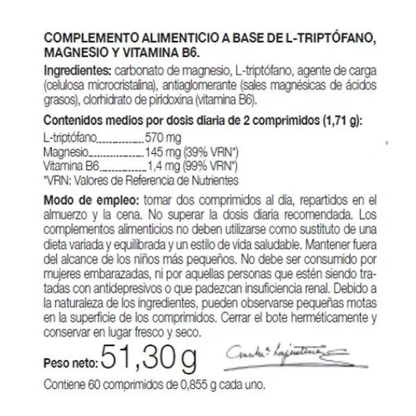 El Triptófano con Melatonina + Magnesio y Vitamina B6 es un complemento alimenticio que contribuye a mejorar el descanso y el ritmo circadiano natural del cuerpo y de la mente.