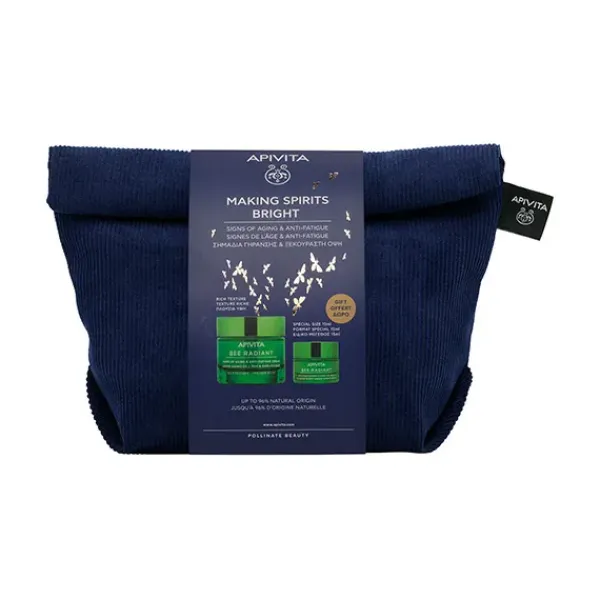 Un cofre único para ti o para tus seres queridos en un neceser elegante. La combinación perfecta para prevenir los signos de la edad y fatiga con BEE RADIANT Crema Signos de la Edad & Antifatiga Textura Rica y un formato especial de BEE RADIANT Gel-Bálsamo de Noche que Alisa y Restaura la piel.