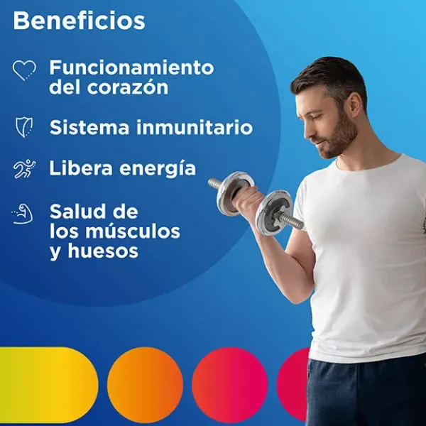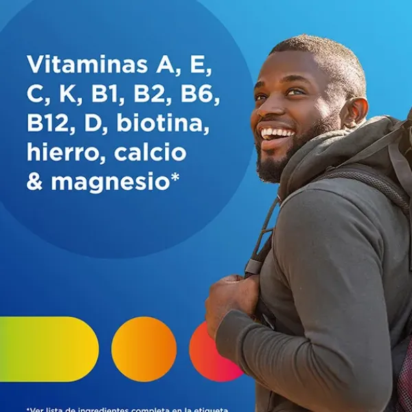 Complemento alimenticio con vitaminas y minerales para hombres a partir de 18 años. Ayuda al funcionamiento del sistema inmunitario y mejora la salud de los músculos, gracias al aporte de vitaminas y minerales.