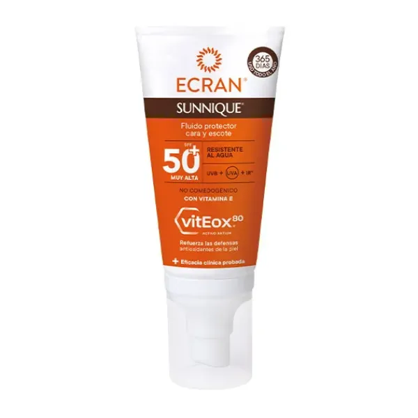Fluido Solar para cara y escote, con un factor de protección 50+ que protege las células del daño de los INFRARROJOS.