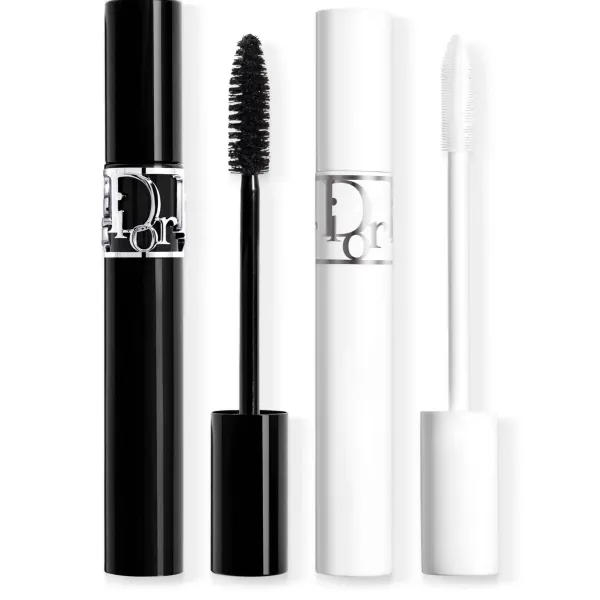 La máscara Diorshow se presenta en un cofre de edición limitada, acompañada del primer de pestañas imprescindible de la Maison, Diorshow Maximizer 4D, para una rutina voluminizadora completa. Firmado por Pietro Ruffo, el estuche exterior del cofre se adorna con un sol radiante y un fresco floral sobre los cuales descansa la banda couture Dior. Este cofre de máscara de pestañas volumen y definición contiene: