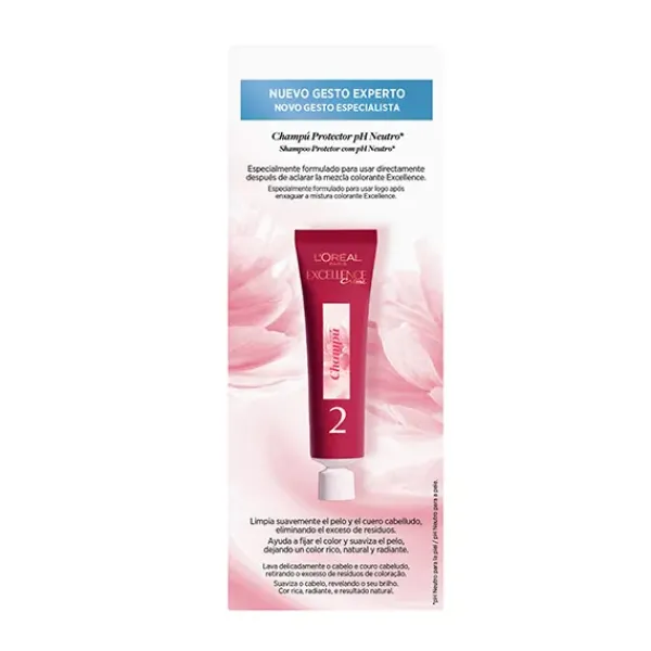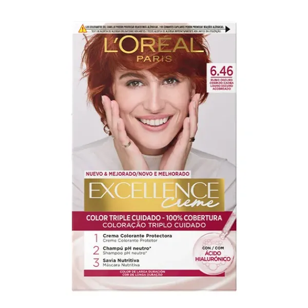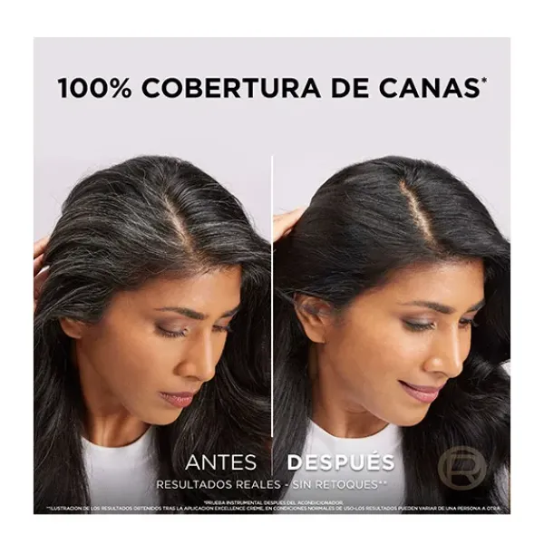 La Crema Color Triple Cuidado Avanzado Excellence, con Pro-Keratina, Ceramida y Ionene G, protege el cabello antes, durante y después de la coloración con un 100% de cobertura de canas.