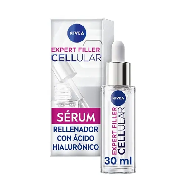 NIVEA Cellular Expert Filler Sérum Rellenador de Ácido Hialurónico es un sérum de textura ligera y de rápida absorción, con una fórmula no pegajosa que incluye un 20% de solución rellenadora compuesta de: Micro Ácido Hialurónico puro, que aumenta la retención de hidratación de la propia piel y la rellena visiblemente; y Glicerina, conocida por suavizar y mantener la piel revitalizada durante más tiempo. Alisa las arrugas y rellena la piel del rostro de forma visible. Al instante, las reservas de hidratación de la piel se rellenan y la piel se siente más flexible. En 1 semana, la piel se siente más firme y tersa, reduciéndose las arrugas visiblemente. En 2 semanas mejora el aspecto del rostro, la piel se ve más uniforme y está hidratada de forma duradera para prevenir nuevas arrugas.