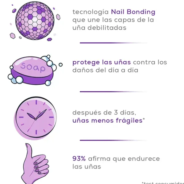 Gracias a su tecnología Nail Bonding, ayuda a unir la superficie debilitada de la uña.