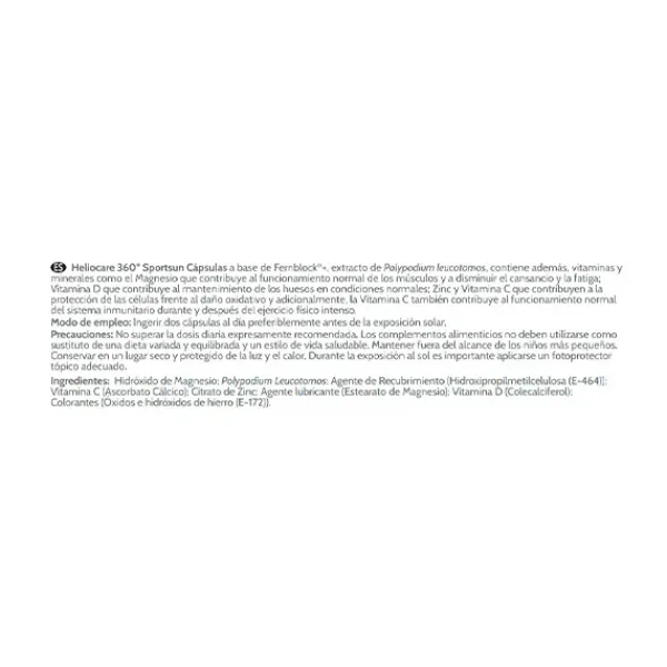 Cápsulas de fotoprotección para sumar protección durante la práctica deportiva. Formulada en colaboración con nutricionistas deportivos. Cápsulas con alto contenido de Fernblock®+, que aumenta la resistencia de la piel al Sol desde la primera toma, neutraliza y repara el daño solar.