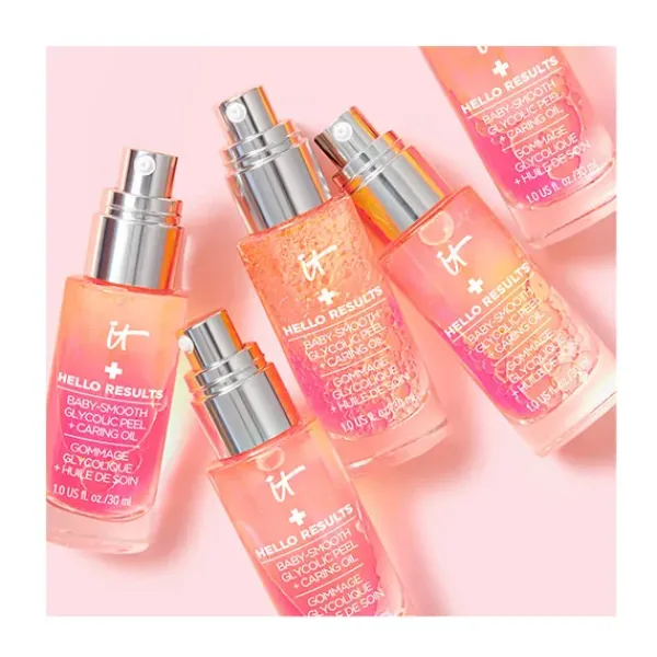 ¿QUÉ ES? IT COSMETICS Hello Results Baby-Smooth Glycolic Peel + Caring Oil Peeling es un exfoliante de ácido glicólico diario de uso nocturno.