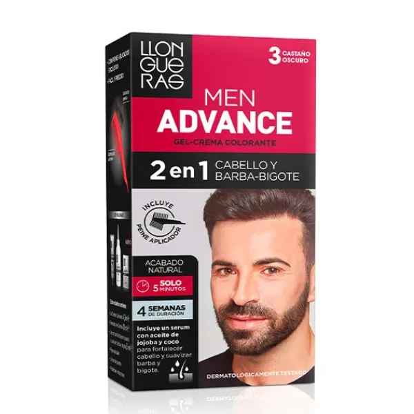 Llongueras Men Advance Tinte de Cabello Hombre. 2 en 1 Cabello, Barba y Bigote