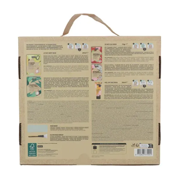 Contiene una diadema, un cepillo para mascarilla, dos mascarillas faciales, una mascarilla Peel-Off y dos mascarillas de arcilla para purificar tus poros y darle un plus de hidratación a tu rostro.