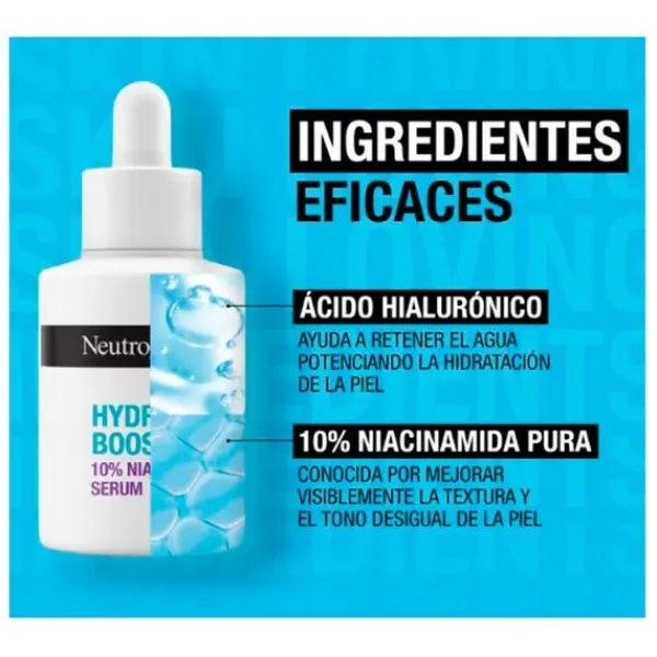 Sérum 10% Niacinamida, hidrata en 1 sólo uso y reduce visiblemente os poros para una piel suave y radiante.