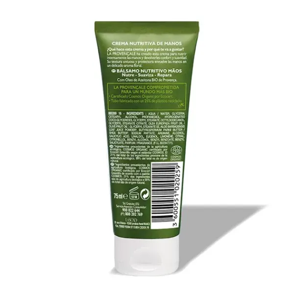 La crema de manos con aceite de oliva bio, nutre, suaviza y repara intensamente las manos devolviendoles el confort y la suavidad. Su textura untuosa y protectora envuelve las manos en un delicado aroma floral.