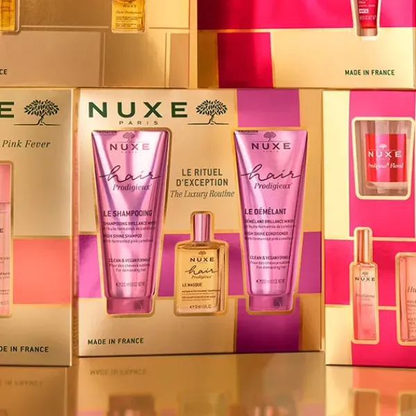 Cofre Hair Prodigieux contiene: Un ritual de 3 cuidados con la fragancia icónica de Huile Prodigieuse®.