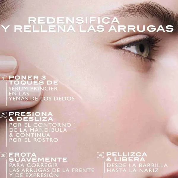**** Exención de responsabilidad: prueba clínica realizada en 63 mujeres después de 8 semanas de aplicar Sérum Princier dos veces al día, % de opinión positiva.