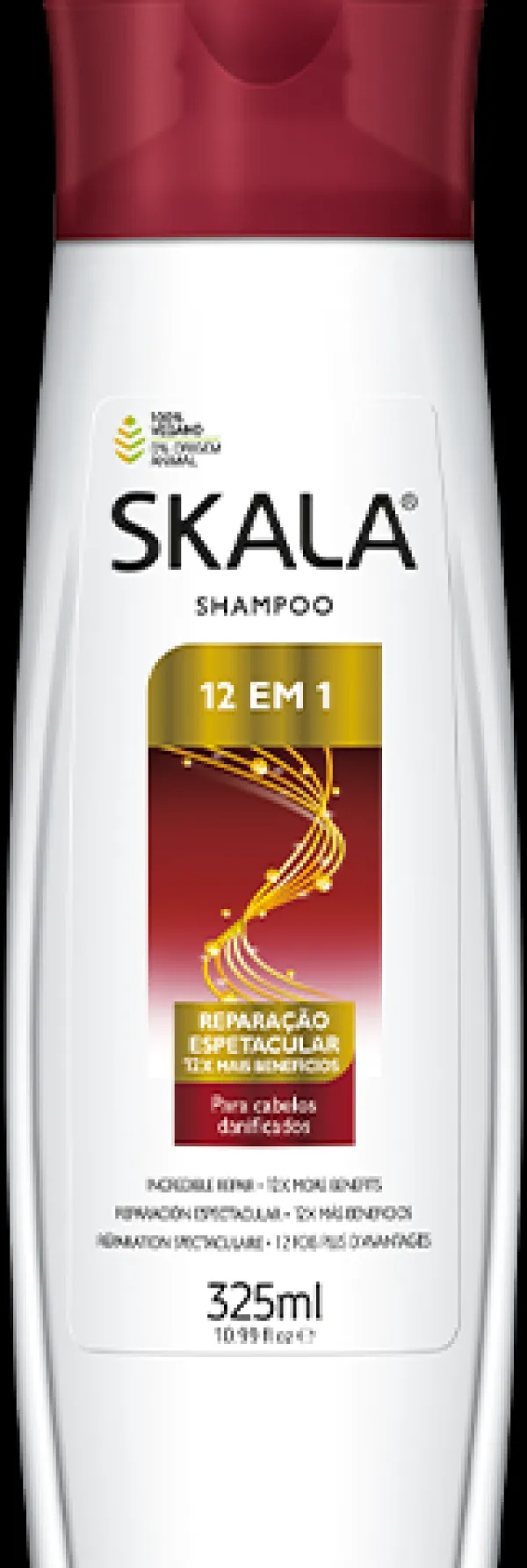 El Champú Skala 12 en 1, enriquecido con vitamina E y D’Pantenol, brinda una restauración espectacular y nutrientes vitales con propiedades que actúan directamente sobre el cabello para combatir los principales signos de daño: sequedad, puntas abiertas, falta de brillo, rotura, aspereza, deshidratación , porosidad y pérdida de vitalidad.