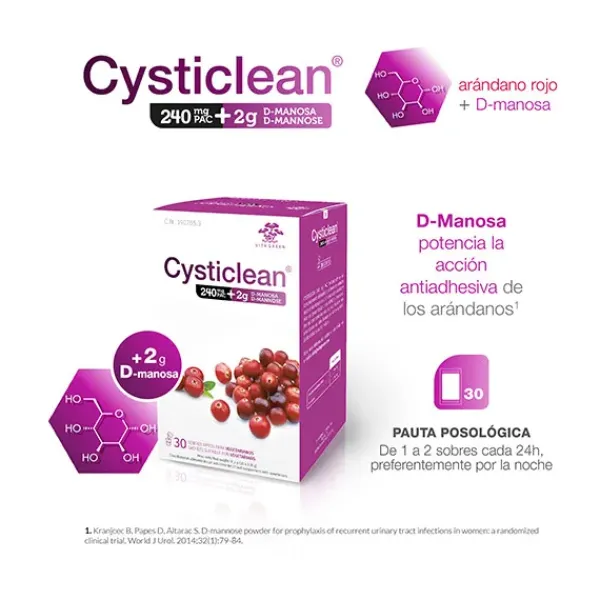 La D-Manosa, conocida por su capacidad antiadhesiva, se adhiere a las E. coli facilitando su eliminación.