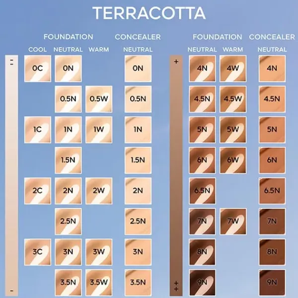 Terracotta Concealer se presenta en 16 tonos que corresponden a todos los niveles de intensidad de Terracotta Le Teint, cubriendo un amplio espectro de tonos de piel. Todo el mundo puede encontrar el tono de corrector que corresponde a su tono de piel natural de forma intuitiva.