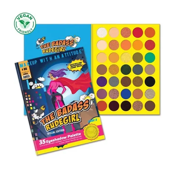 Paleta The Badass Rude Girl de Rude contiene los tonos más vivos e intensos de plena tendencia. Formada por 35 sombras mates y shimmers en tonos azules, rojizos, naranjas es toda una delicia para la vista.