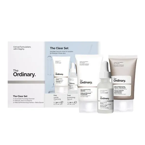 El Clear Set ofrece una rutina específica, con Salicylic Acid 2% Solution formulado para las pieles propensas a las imperfecciones.