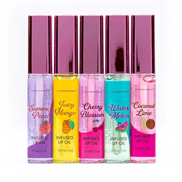Set de 5 aceites labiales con sabor a frutas, que hidratan tus labios en profundidad.