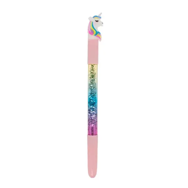 Bolígrafo con forma de unicornio con purpurina y led.