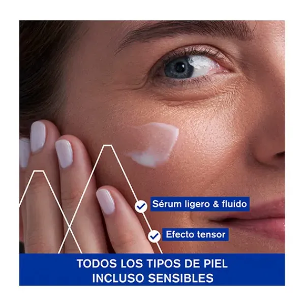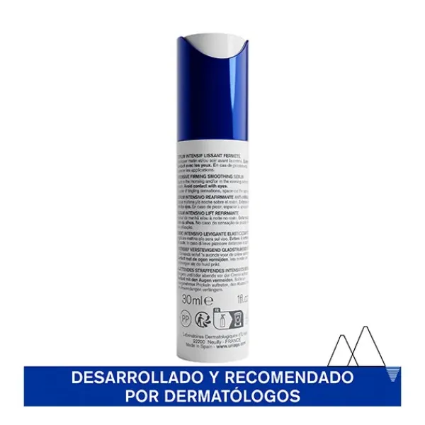 Este suero alisador reafirmante intensivo actúa simultáneamente sobre las arrugas, la firmeza y sobre las agresiones diarias de la piel: luz azul, rayos UV, contaminación, estrés, fatiga.