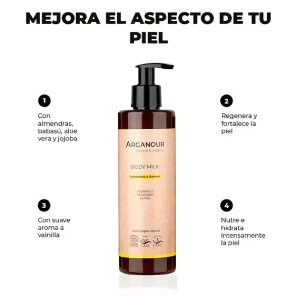 Hidrata con una leche o crema corporal a base de aceite de almendras, babasú, aloe vera y esters de jojoba.