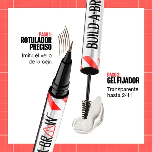 Maybelline New York, Build-A-Brow 2-en-1 con Rotulador preciso y Gel Fijador de cejas.