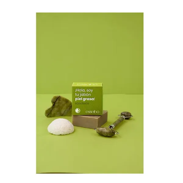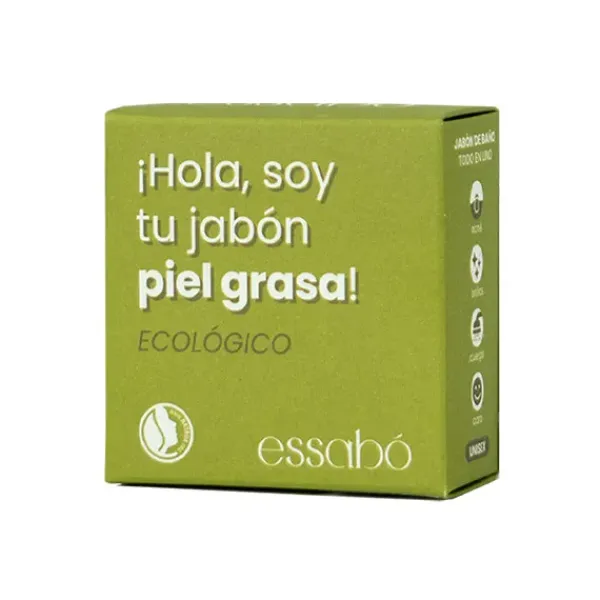 Essabó Piel Grasa es un jabón especialmente diseñado para personas con piel grasa y/o con acné. Está enriquecido con arcilla verde certificada. La arcilla verde es un regulador natural de la grasa y reduce el sobreengrasado de la piel. Su base está elaborada con aceite de coco de agricultura sostenible y de aceite de oliva procedente de cultivos bio españoles. Elaborado artesanalmente mediante saponificación tradicional en frío. Idóneo para pieles grasas o mixtas pieles con alta actividad seborreica, hiperhidrosis, brillos, poros y granitos y/o pieles con acné.