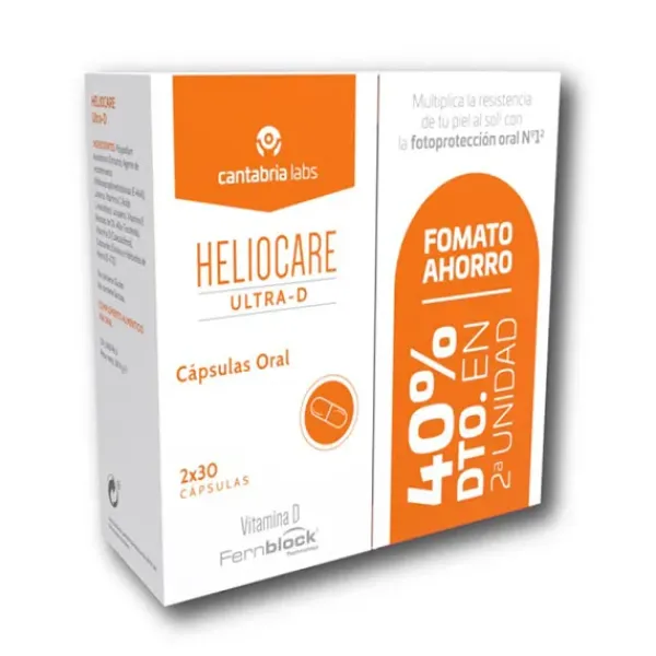 Cápsulas con alto contenido de Fernblock®+, que aumenta la resistencia de la piel al Sol desde la primera toma, neutraliza y repara el daño solar. En combinación con la fotoprotección tópica consiguen una protección homogénea y más completa. Su fórmula incluye vitaminas D y E, y niacinamida. Sin gluten.