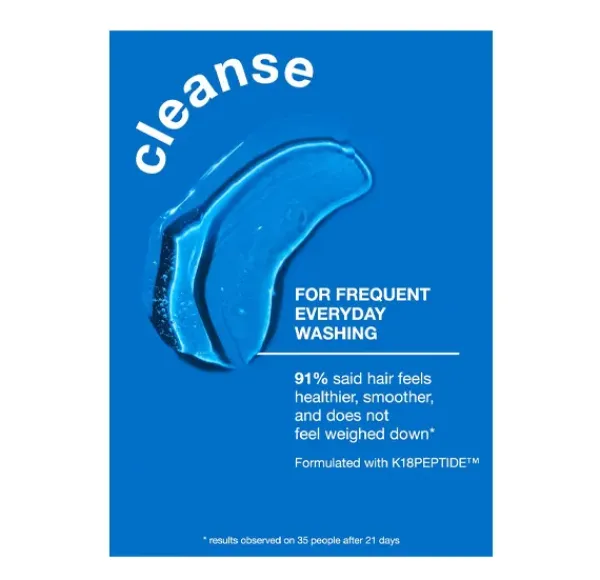Un champú clarificador seguro para el color con ingredientes inspirados en el cuidado de la piel + microdosis con el PÉPTIDO K18 patentado para nutrir el cabello mientras elimina la acumulación para un lienzo de cabello limpio y saludable.