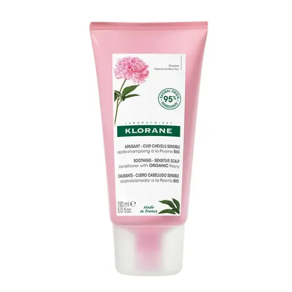 El acondicionador calmante a la peonía BIO de Klorane está formulado específicamente para calmar el cuero cabelludo irritado y desenredar suavemente el cabello.
