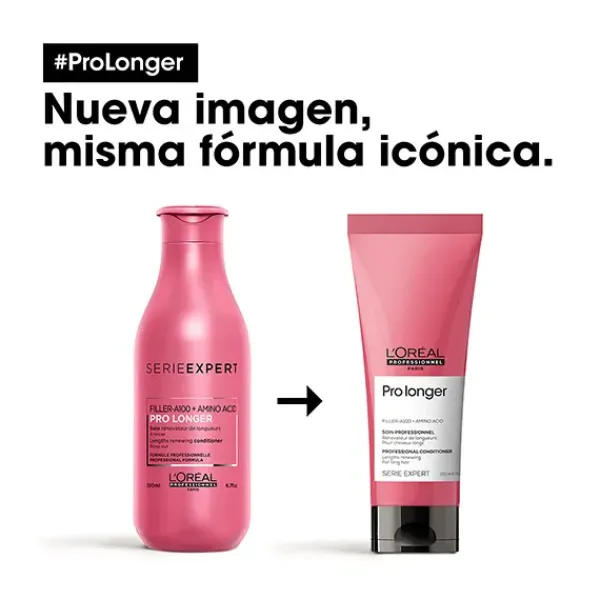 Potenciado con Filler-A100 y Aminoácidos. La crema renovadora de largos y puntas de Serie Expert Pro Longer para medios y puntas, aporta una textura ligera al cabello largo que sufre de puntas finas, ayudando a renovar la fibra instantáneamente y protegiendo el cabello del calor hasta 230°C/450°F*