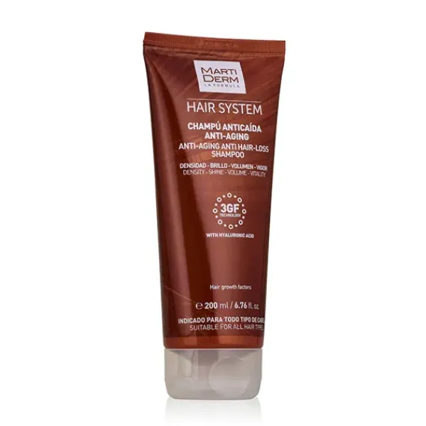 El Champú Anticaída Anti-Aging ayuda a conseguir un cabello con más cuerpo, densidad y vigor. Aporta brillo, suavidad e hidratación a los cabellos débiles con tendencia a la caída y mejora el anclaje al cuero cabelludo.