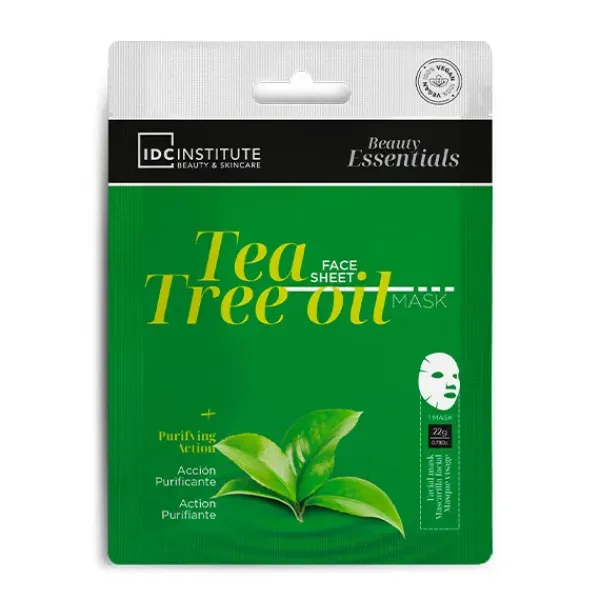 Esta mascarilla vegana de tela contiene aceite de árbol de té, que tiene grandiosas propiedades purificantes.