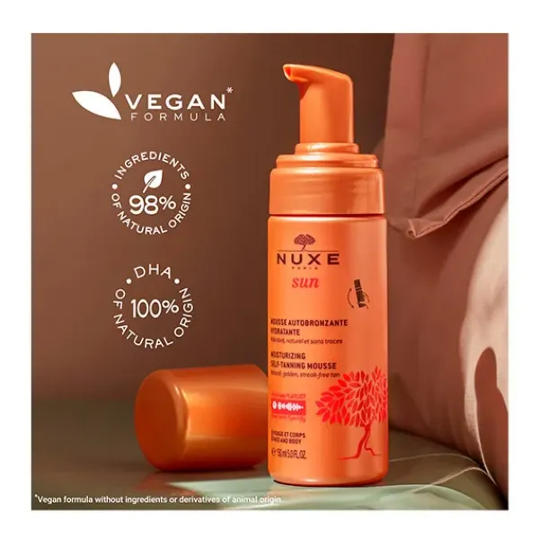 Espuma autobronceadora, con un 98 % de ingredientes de origen natural, para un bronceado dorado desde el primer uso.