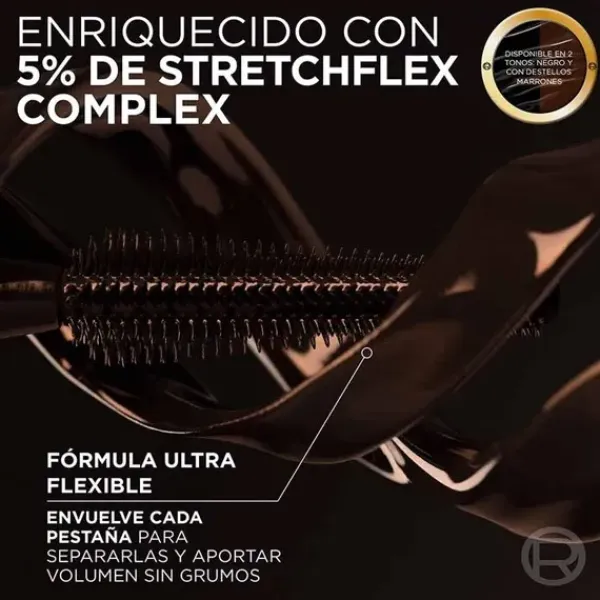 Formulada con un 5% de complejo StretchFlex. Este ingrediente especial envuelve cada pestaña en una fórmula ultra negra y flexible, realzando la profundidad de la mirada en cada aplicación. Además, su cepillo múltiple consigue una mirada visiblemente más grande. Las cerdas cortas cargan las pestañas con volumen ultra negro y las cerdas largas aportan un efecto abanico y extienden las pestañas del interior al exterior.