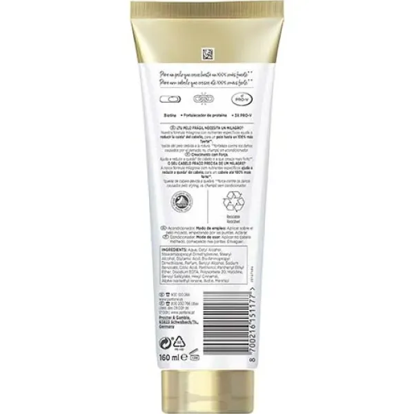 El Acondicionador Pantene Pro-V Miracles Crecimiento con Fuerza está diseñado para ayudar a reducir la caída del pelo originada por rotura. Así, el pelo crece fuerte de la raíz a las puntas, y resiste al desgaste por el peinado.
