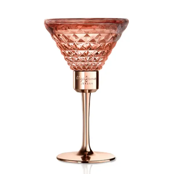El frasco femenino de Pepe Jeans London es una pieza singular que rebosa lujo y originalidad. Esculpida en forma de una copa de cóctel y cortada en prismas con vidrio de color rosa, representa el deseo de celebrar la vida.