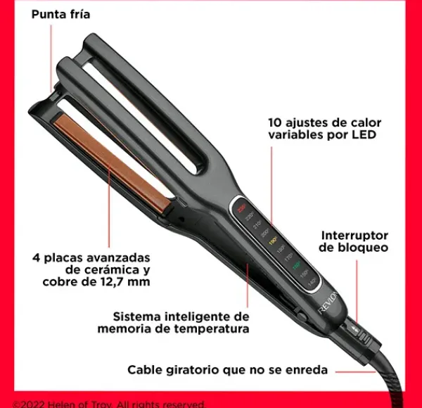 -Tecnología avanzada de cerámica de cobre para una transferencia de calor uniforme superior y un estilo más rápido que resulta en un deslizamiento ultrasuave y un alisado 2 veces más rápido en una sola pasada.
