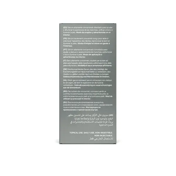 Sérum altamente concentrado diseñado para ayudar a difuminar la apariencia de las manchas, unificar el tono e iluminar la piel.