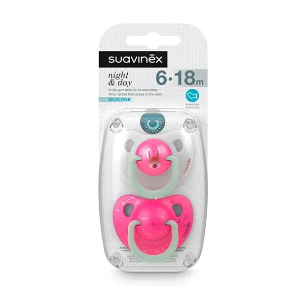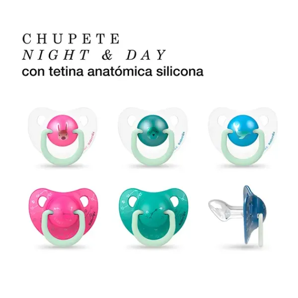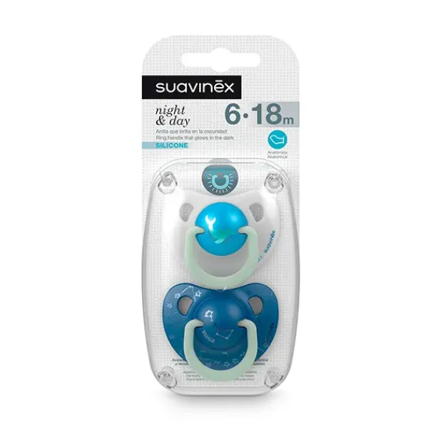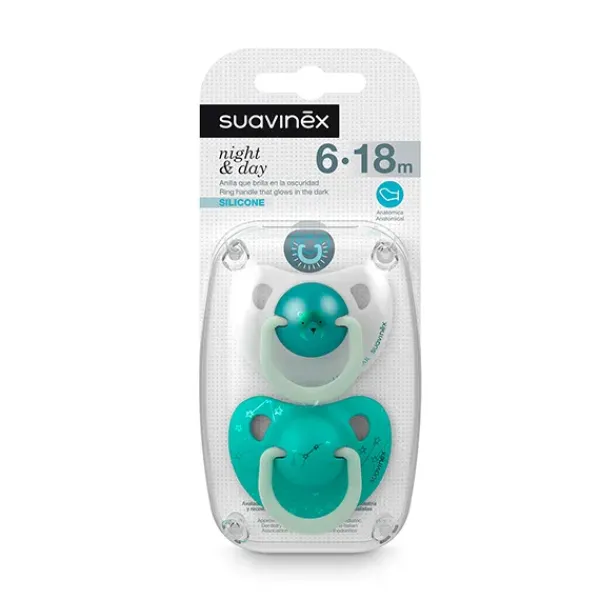 Pack 2x chupetes Night & Day para bebés de 6-18 meses con tetina anatómica de silicona.