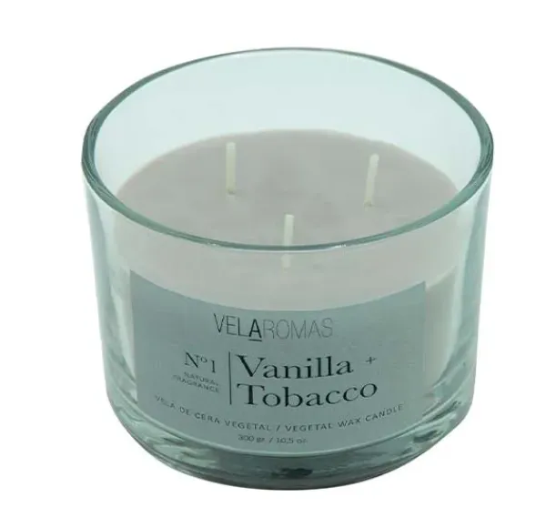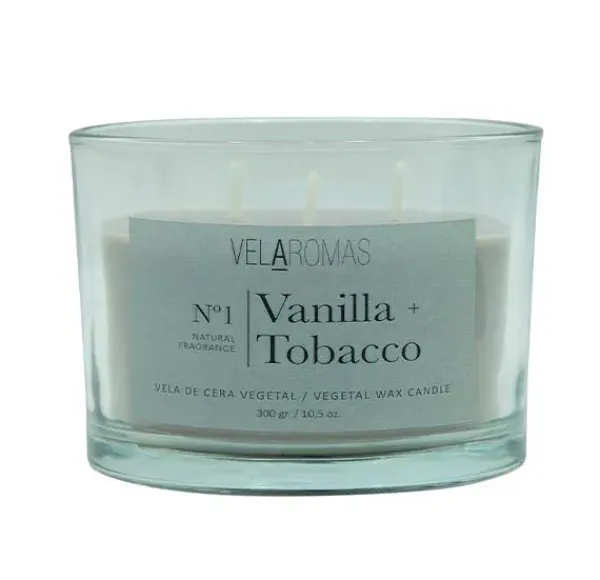 Vela 3 Mechas con tapa de cera vegetal con fragancia a VANILLA TOBACCO