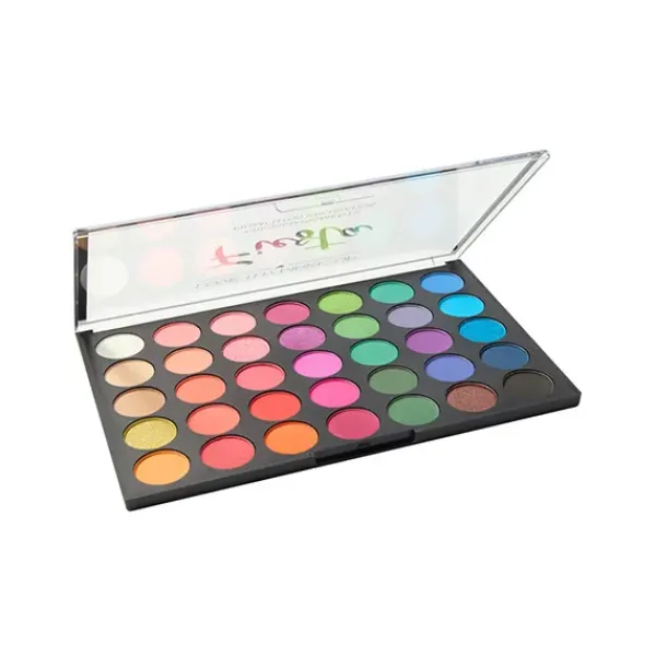 Paleta de 35 colores que contiene una mezcla de polvos mates y brillantes, altamente pigmentados y fáciles de difuminar.