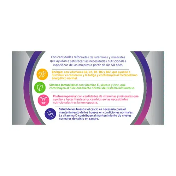 Complemento alimenticio con vitaminas y minerales para mujeres a partir de 50 años.Fórmula específicamente equilibrad…