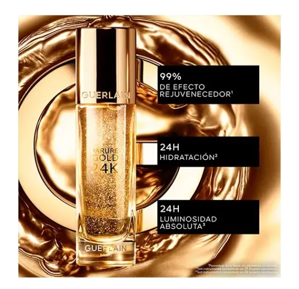 Fiel a la ecuación mágica que caracteriza a la serie Parure Gold, la base de maquillaje Parure Gold 24K, con un 99 % de efecto rejuvenecedor¹, enriquecida con una pizca de oro de 24 quilates, proporciona 24 horas² de luminosidad absoluta y 24 horas³ de hidratación. Concentrado puro de resplandor, Parure Gold 24K es la garantía de un maquillaje impecable y sublimado y de una piel más bonita día tras día.