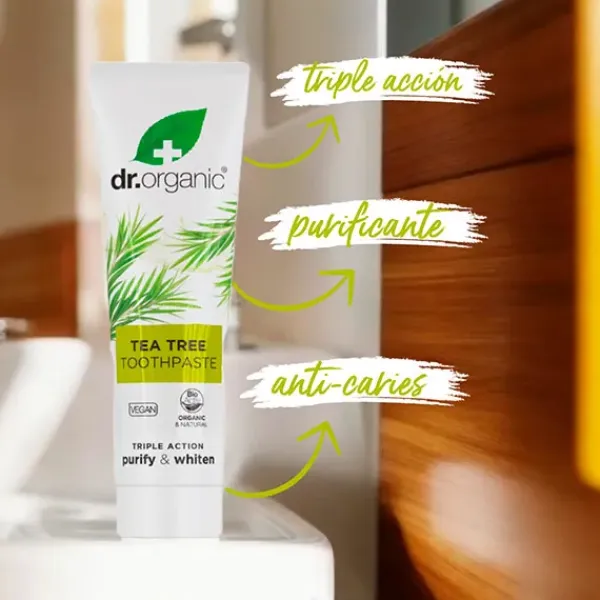 Tea Tree Toothpaste Usando el árbol de té orgánico y bioactivo más puro, mezclamos cuidadosamente este aceite esencial purificador excepcional con una formulación única de extractos bioactivos, diseñado para dejar la boca con una menta fresca y naturalmente limpia.